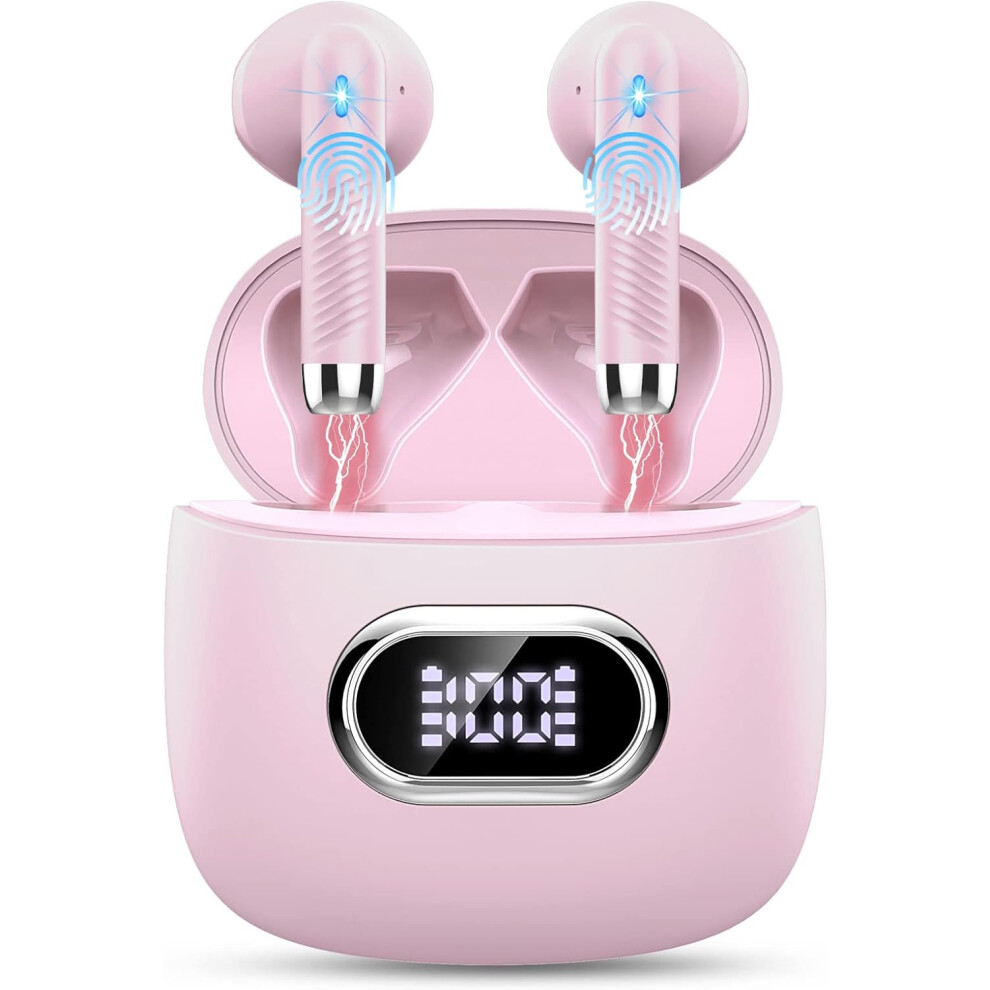 (Pink) Wireless Earbud, Bluetooth 5.3 Headphones in Ear with Noise Cancelling Mic