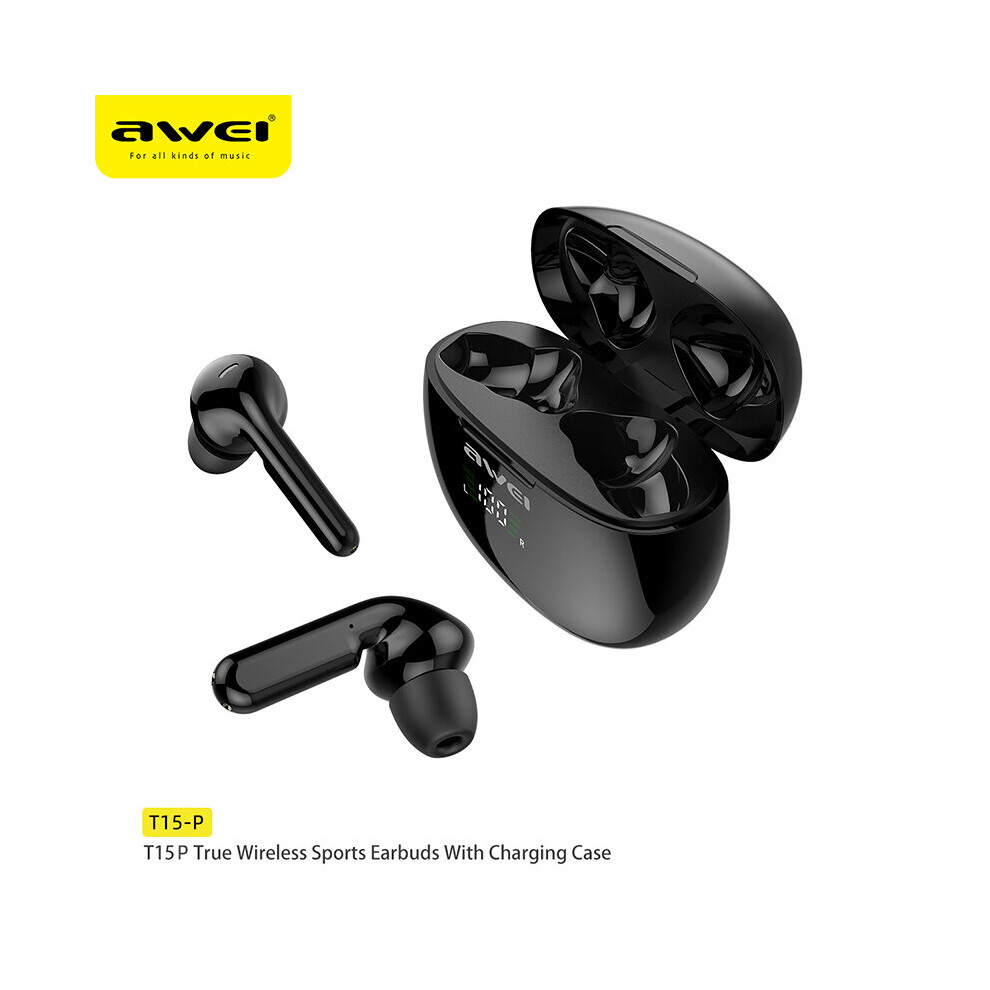 (a-Black) Awei T15P Bluetooth Earphones Wireless Headphones Earbud Gamer HiFi Touch Control With Microphone Sports Earhook Earphone