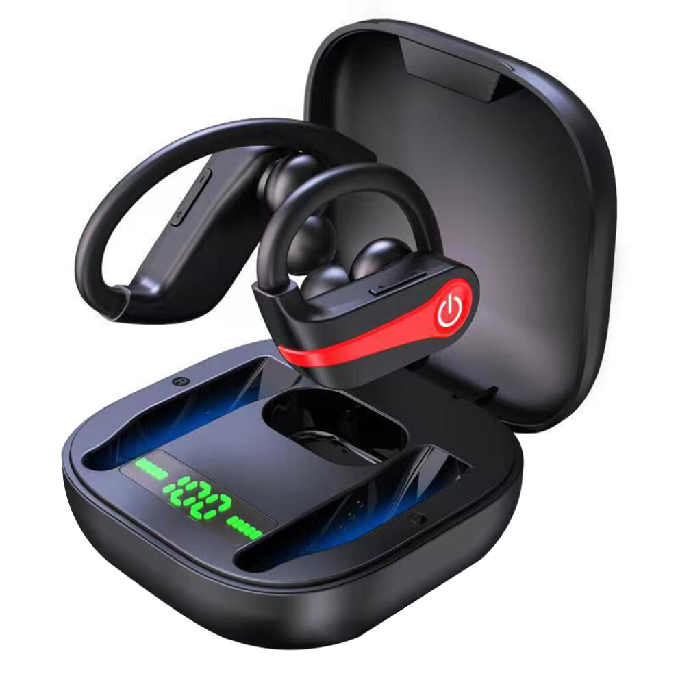 (Red) TWS bluetooth 5.1 Game Earphone LED Display Sport Headsets Stereo Earbud Wireless Headphones