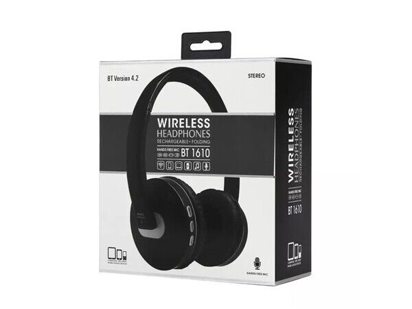 Gym Headphones On Ear Wireless Headphone Sport Rechargeable with Mic - Black