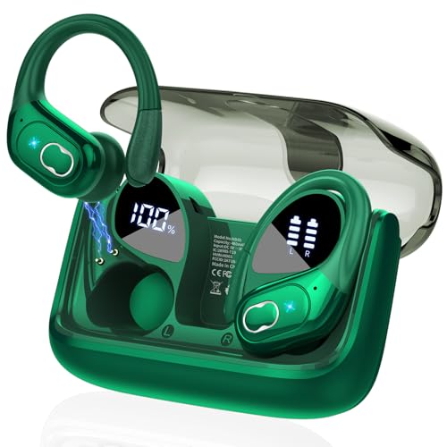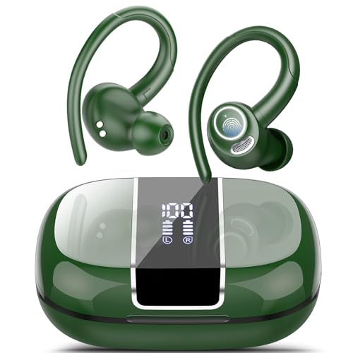 VKROBAG Wireless Earbuds Sport, Bluetooth 5.3 Headphones with ENC Noise Canceling Mic, 48H Ear Buds with Earhooks, 3D Stereo, IPX7 Waterproof Wireless Earphones for Running, Gym, Workout, Dark Green