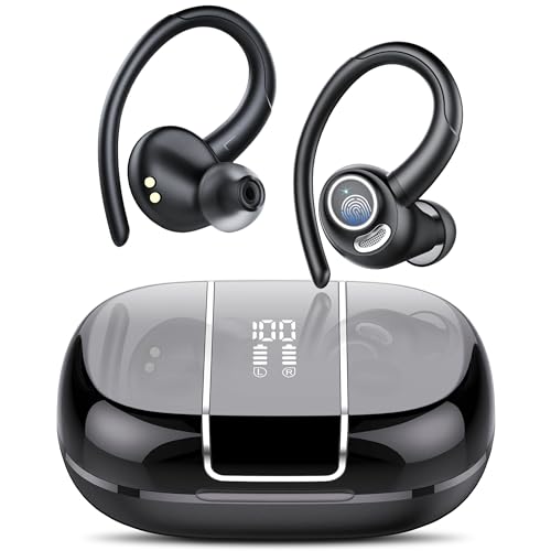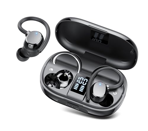 Wireless Earbuds, Bluetooth 5.4 Headphones Sport with Deep Bass Stereo, 60H Wireless Earphones with Earhooks 4 ENC Noise Cancelling Mic, Bluetooth Earbuds IP7 Waterproof, LED Display for Running/Gym
