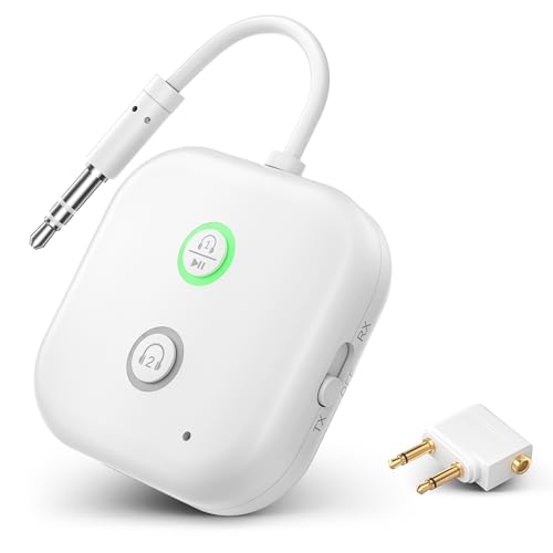 Hoite Airplane Bluetooth Adapter, Transmitter 2 in 1 Airplane Wireless Bluetooth for TV Headphones Dual Link, for PC/Car/Gym/Home Stereo