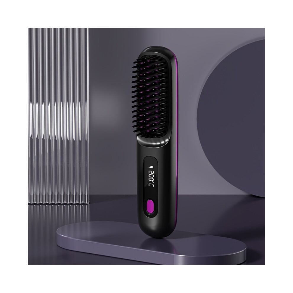 (As show, One size) Hair Straightener, 30s Fast Heating Straightener Brush with LED Display, Heating Wireless Hair Straightener for Curly Hair, Soft H