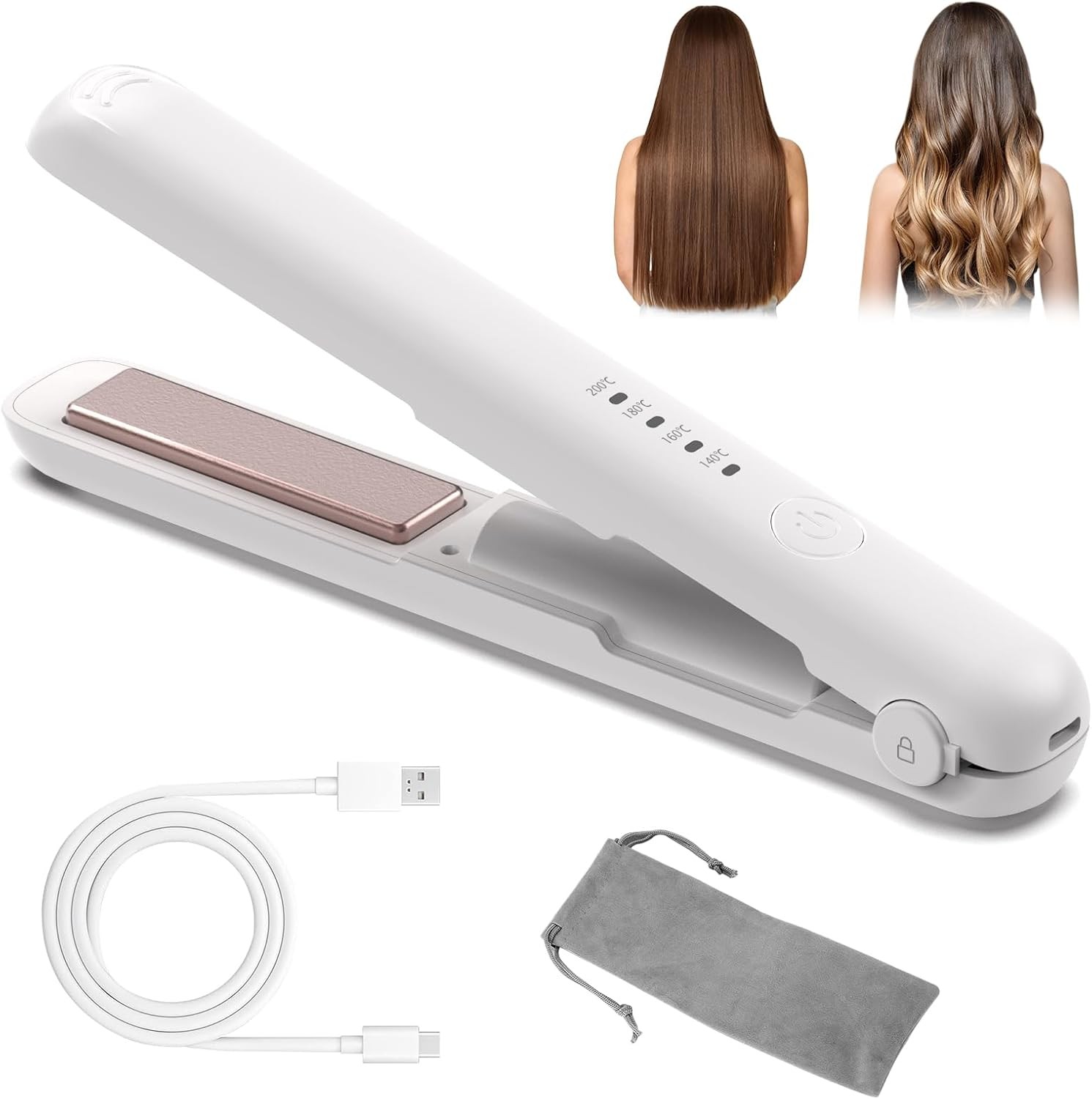 OBEST Mini Cordless Hair Straightener, Portable Travel Wireless Straightener, C