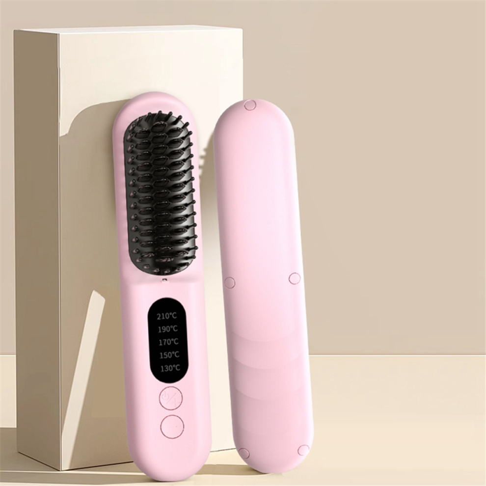 Wireless Hair Straightener Brush Fast Heated Brush-Pink