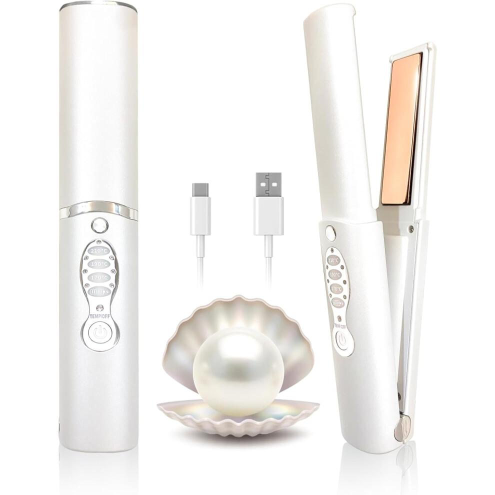 Cordless Hair Straighteners Curler 2 in 1, Mini Portable Travel Wireless Hair Straightener, Fast Heat Up, Anti-Scald 3-Level Hair Straightener for