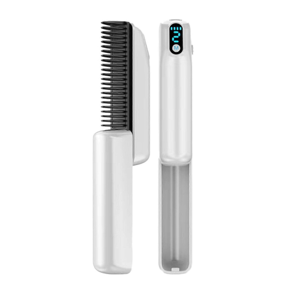 (White) Portable Wireless Hair Straightener Comb