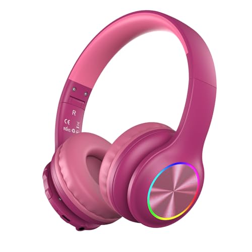 iClever BTH22 Kids Bluetooth Headphones, 60H Play Time, 74/85 dBA Safe Volume, Bluetooth 5.4, USB C, Over Ear Kids Headphones Wireless with Mic AUX Cord for iPad/Tablet/Travel/School, Magenta