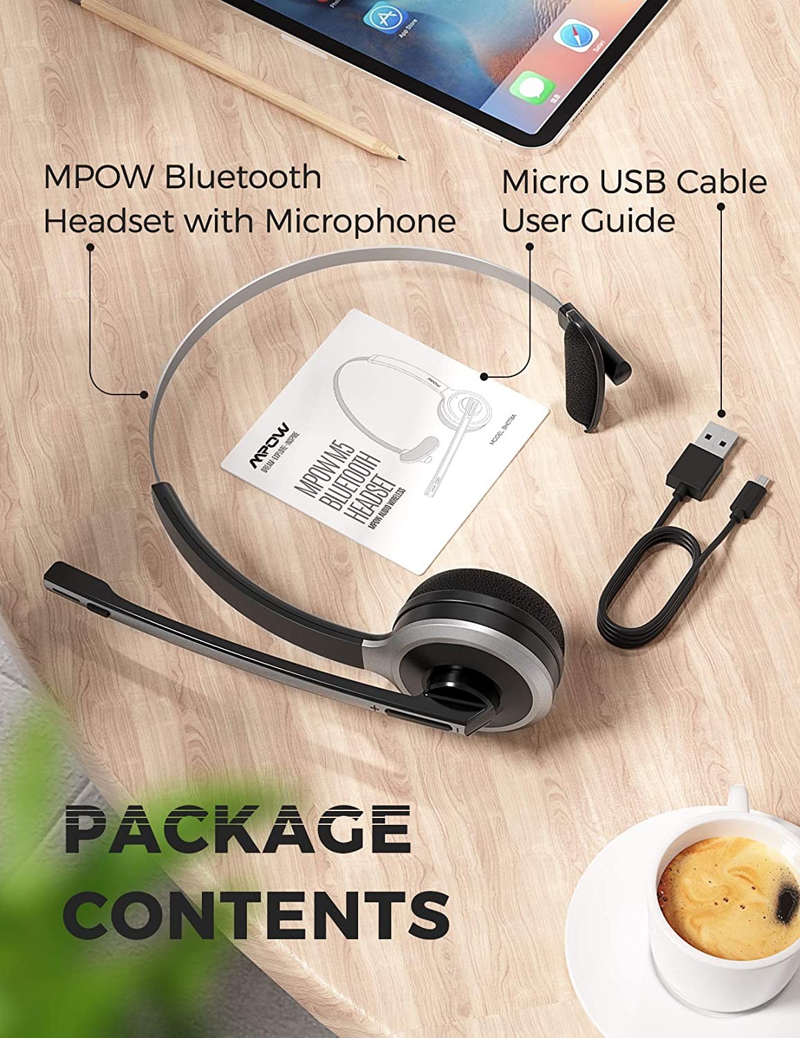 MPOW Headset Headphones Wireless with Microphone MIC for Call Driver Business