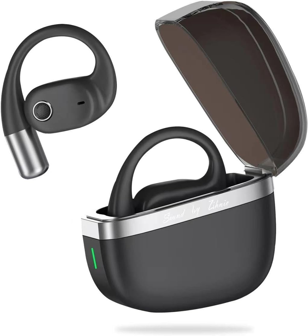 ZIHNIC True Wireless Open Ear Headphones w/Mic, Earbuds w/Earhooks 28 Hrs Play T