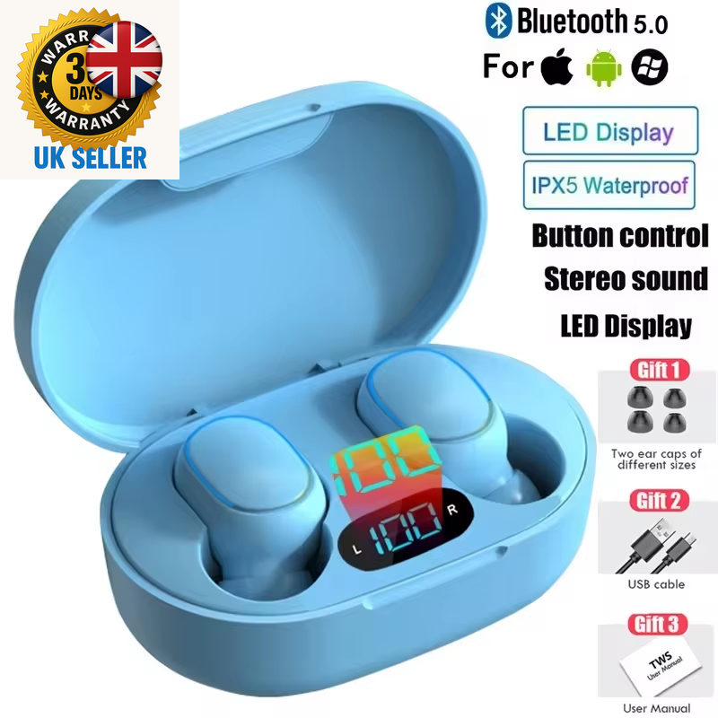 TWS E7S Bluetooth Earphones Wireless Headphones Headset with Mic Hifi Stereo Spo
