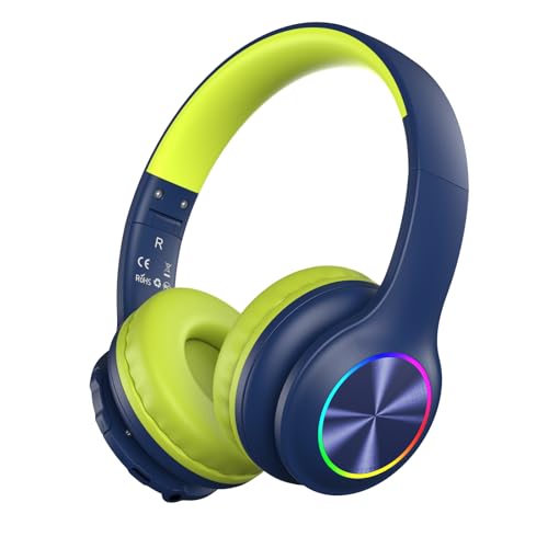 Candy Bila Kids Bluetooth 6.0 Headphones with LED Light, 85Hours Playtimes, Type-C Fast Charging, 85/94dB Volume Limited, Comfort Wireless Headphones with Built-in Mic, Wired & TF Card Mode, Navy Blue