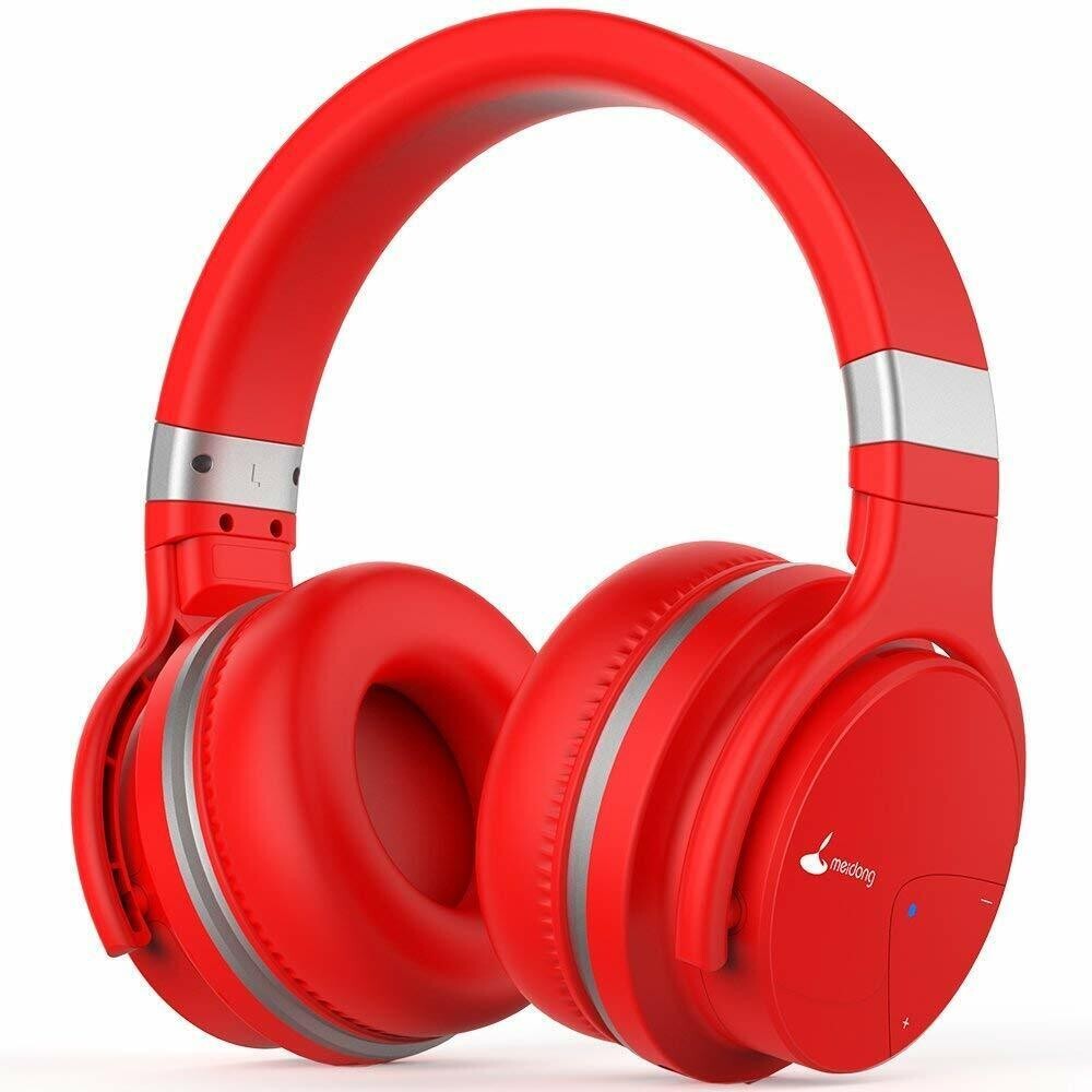 BLUETOOTH WIRELESS NOISE CANCELLING HEADPHONES WITH MIC. DEEP BASS. 30 HOURS RED