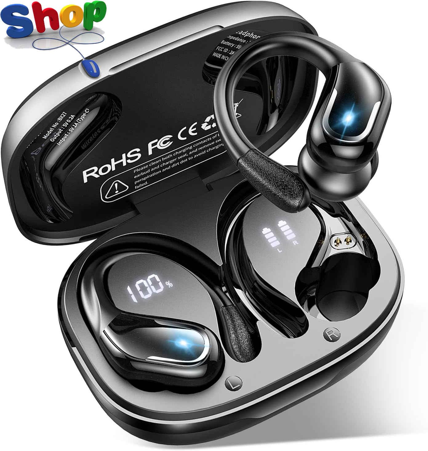 Wireless Earbuds Sport, Bluetooth 5.3 Headphones, Wireless Earphones 75H Playtime and HiFi Stereo Sound with Mic, IP7 Waterproof, Dual LED Display in Ear EarHooks, USB-C, Headsets for Sport, Running