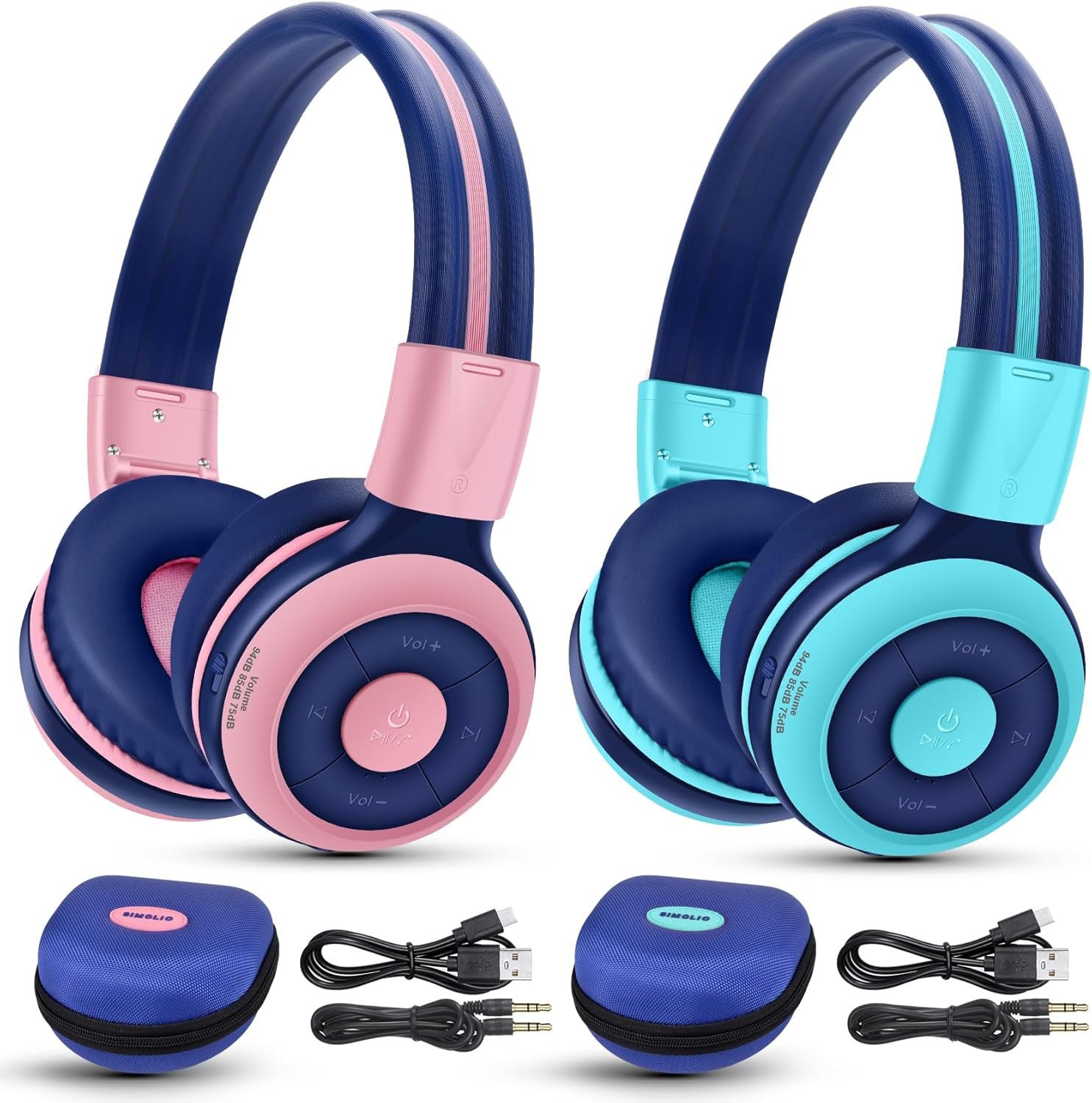 2 Pack of SIMOLIO Wireless Headphones for Kids, Bluetooth Kids Headphone with Mi