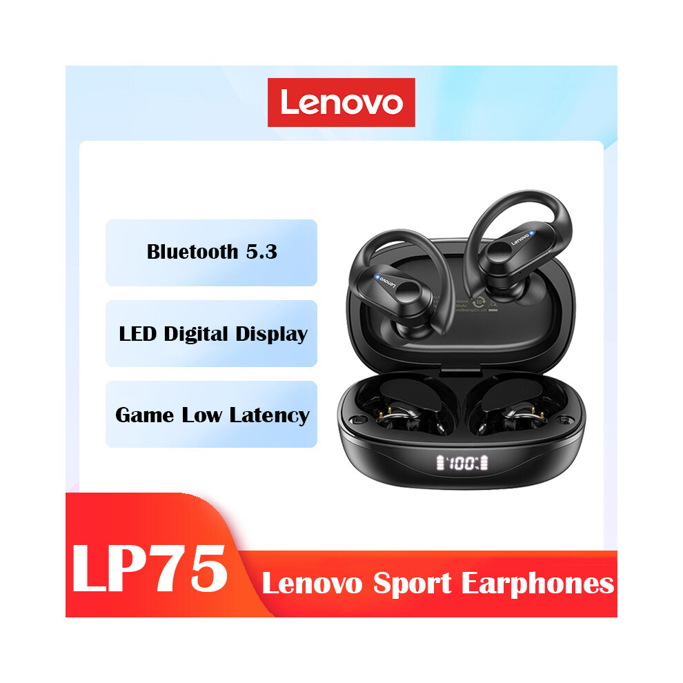 (black) Lenovo LP75 Wireless Bluetooth Headphones Ear Hook Sports Bluetooth 5.3 Earphones Noise Reduction HiFi Stereo Wireless Earbuds