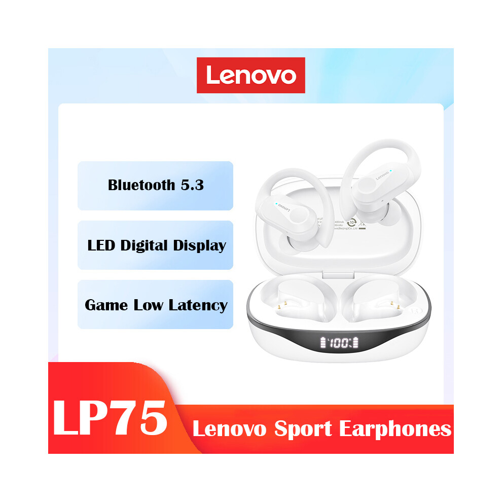 (white) Lenovo LP75 Wireless Bluetooth Headphones Ear Hook Sports Bluetooth 5.3 Earphones Noise Reduction HiFi Stereo Wireless Earbuds