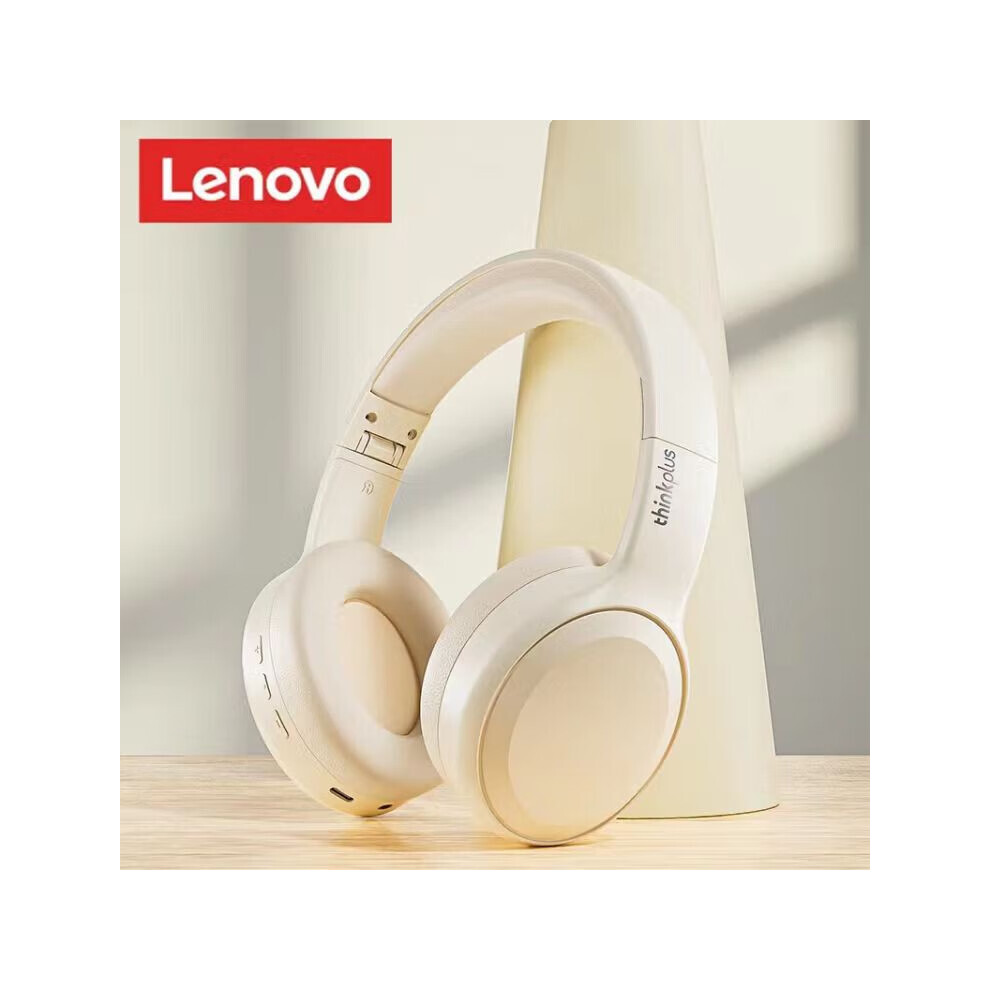(TH30 Beige) Lenovo TH30 Gaming Wireless Bluetooth Headset Long Battery Life Sports Over-Ear Headphones HIFI Stereo Sound Earbuds 40MM New