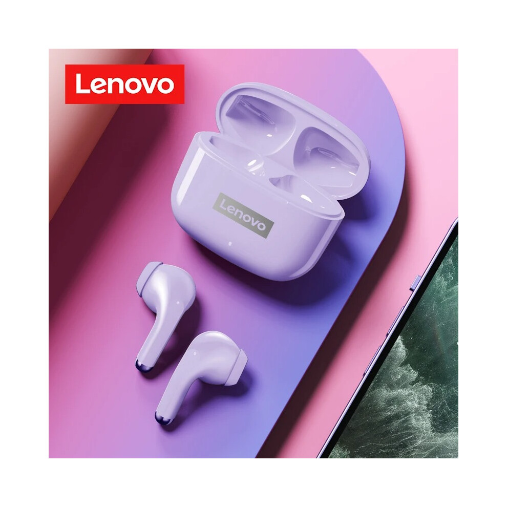(Purple, One size) Lenovo LP40 True Wireless Headphones BT 5.1 Mini Earbuds Sweatproof Sport Headset Touch Control In-ear Earphones with Mic