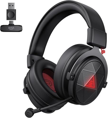EKSA E900X 5.8G Wireless Gaming Headset with Micphone for PC PS4, PS5, Computer, Laptop - Dual Mic ENC Call Noise Cancelling Headphones - 7.1 Srround Sound - Over Ear Headphones for TV, Music, Meeting