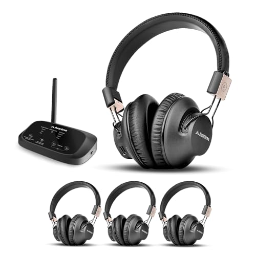 Avantree Quartet 2 - Bluetooth-Compatible Wireless Group Listening Headphones & Transmitter Set for Parties, Silent Discos, Church, TV - Multiple Rechargeable Headphones with Low Latency & Clear Sound