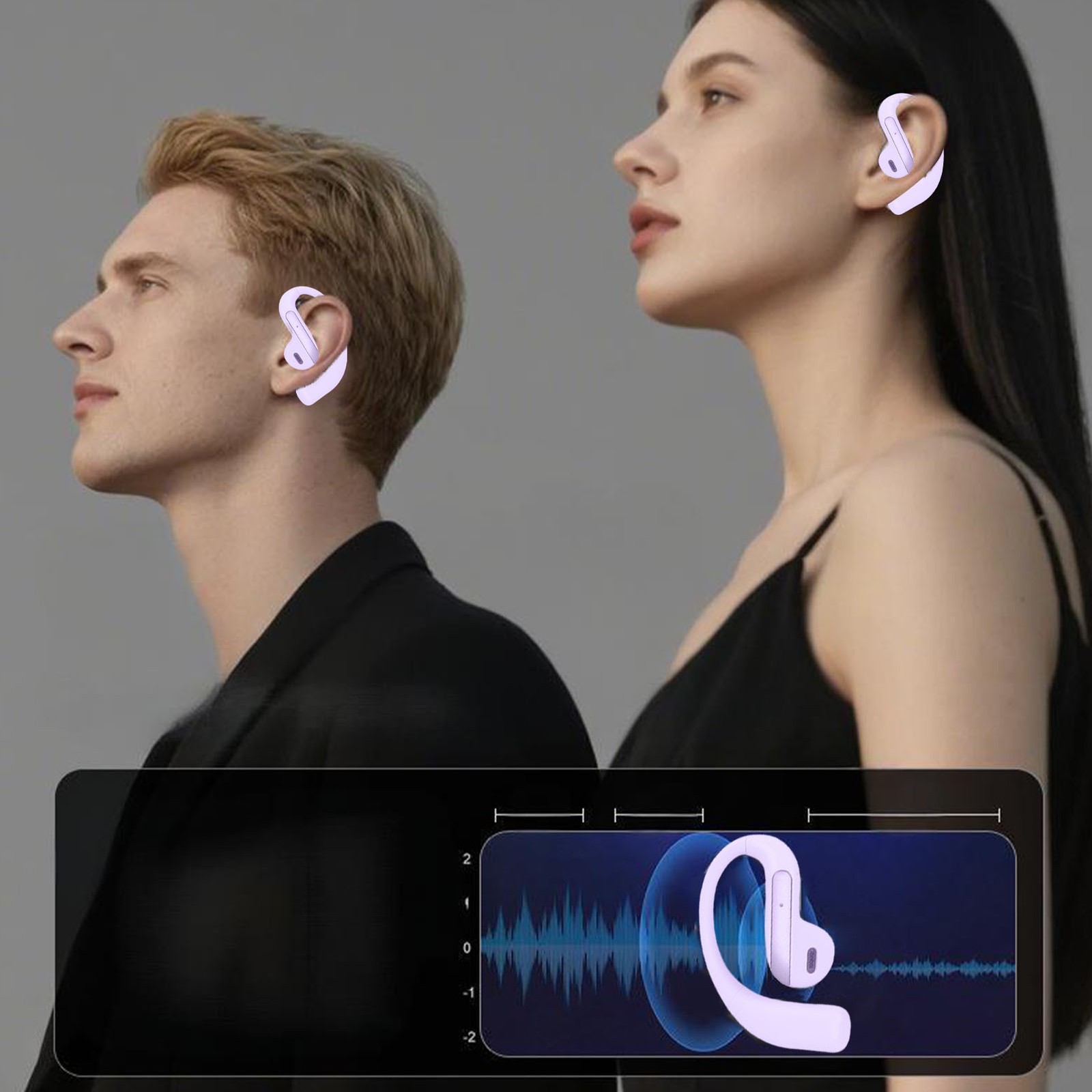 Wireless Headphone Noise Concealing Ear Hook Headset For Study Work Life Violet