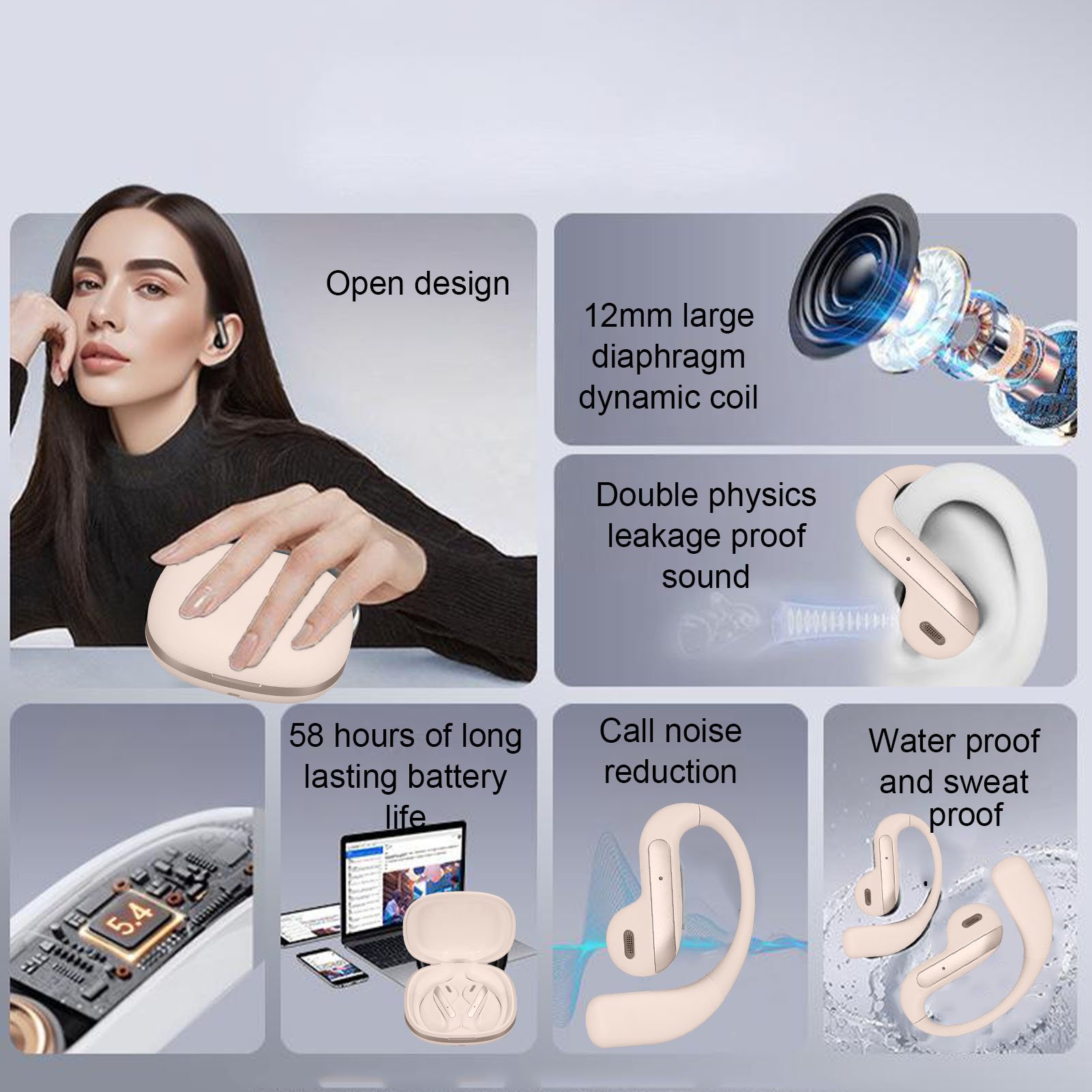 N- Wireless Headphone Noise Concealing Ear Hook Headset For Study Work Life Skin