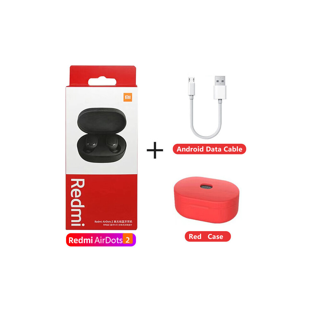 (a-with R Case Cable) Xiaomi Redmi Airdots 2 Bluetooth Earphones Sport Music Gaming Outdoor Mini Wireless Headset with Mic Headphones In Ear Earbuds