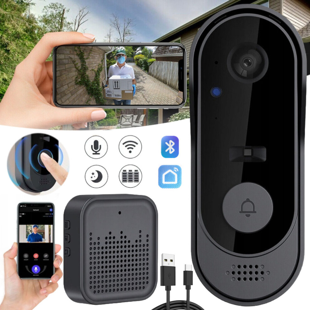 2-Way Audio Wireless Doorbell Camera, Night Vision with Motion Detection Alert, Smart Human Detection, Live View Indoor Outdoor Surveillance, No Month