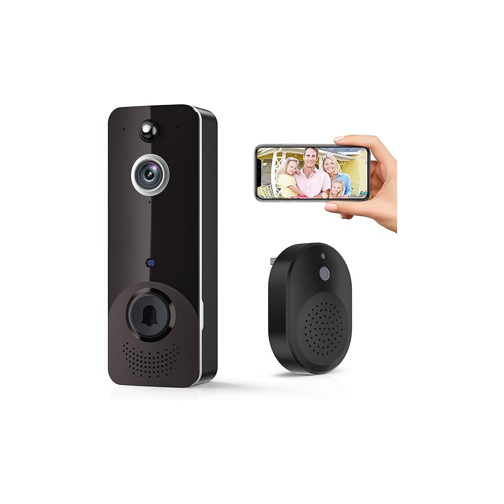 Wireless Doorbell Camera with Smart Human Detection, No Monthly Fee, 2-Way Audio Night Vision, Live View Indoor Outdoor Surveillance, IP65 Waterproof,
