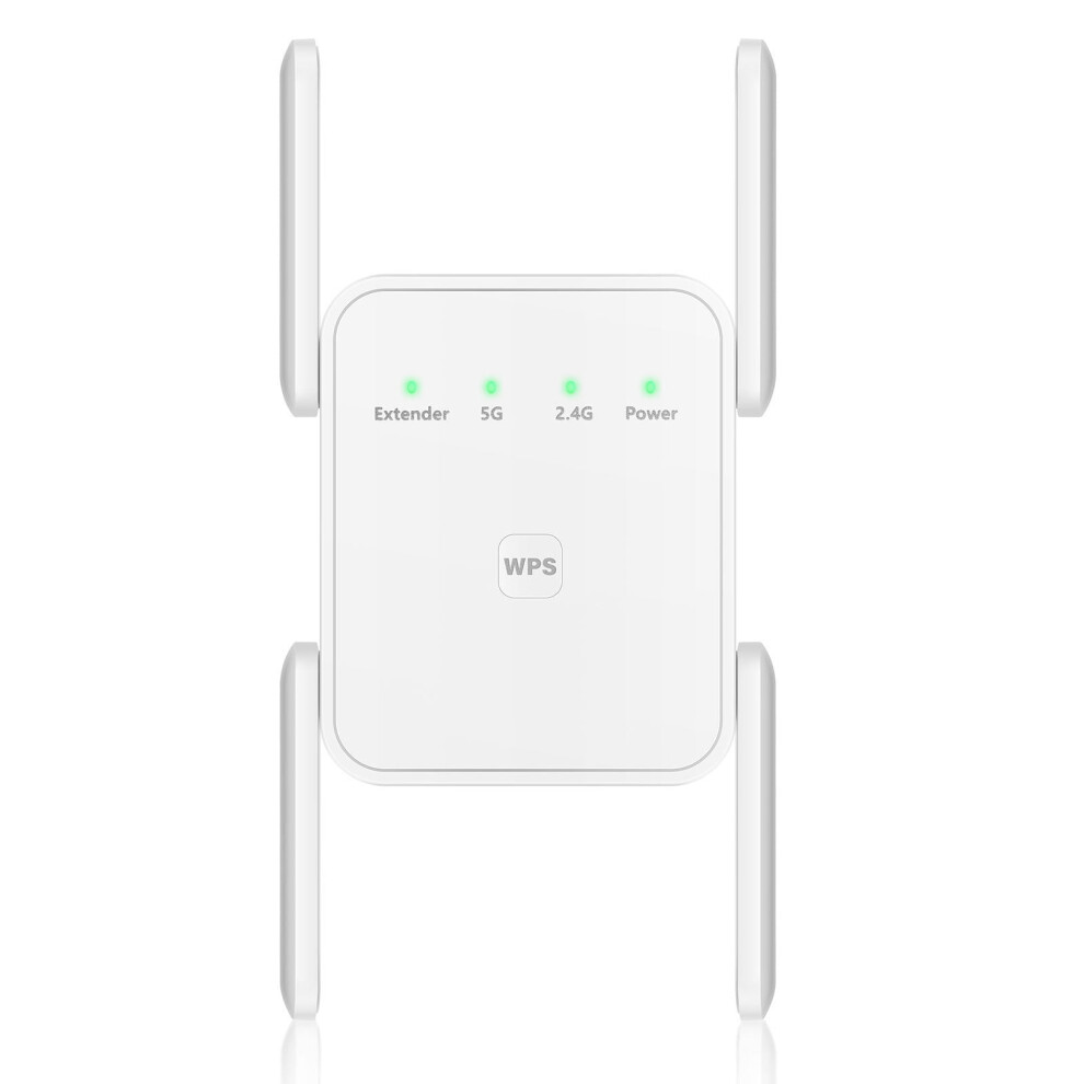 WiFi Extender Signal Booster, 1200Mbps Wireless Internet Amplifier, Dual Band 2.4G & 5Ghz WiFi Extender, 4 Antennas Full Coverage with Ethernet Port and WPS, Ap Repeater Mode (White)