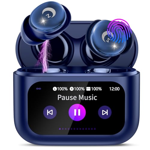 Wireless Earbuds with Smart Touch Screen, 2025 Mini Sleep Earbuds Bluetooth 5.4 Headphone In Ear with Noise Cancelling Mic, 48H Playtime Hi-Fi Stereo Sound, 5 EQ Modes/IP7 Waterproof Ear Buds Blue