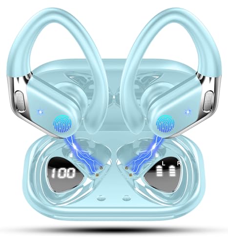Wireless Earbuds, 2025 Bluetooth 5.4 Headphones Sports, 50H Wireless Earphones with Mic CVC 8.0 Cancelling Mic, Deep Bass Stereo in Ear Headphone for Running, 1.5 H USB-C Fast Charge, Light Blue