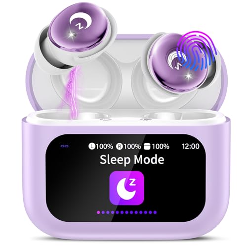 Wireless Earbuds with Smart Touch Screen, 2025 Mini Sleep Earbuds Bluetooth 5.4 Headphone In Ear with Noise Cancelling Mic, 48H Playtime Hi-Fi Stereo Sound, 5 EQ Modes/IP7 Waterproof Ear Buds Purple