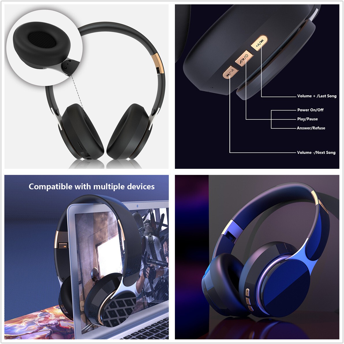 Wireless Bluetooth 5.0 Stereo Headphone Adjustable Earphone Shocking Bass w/Mic