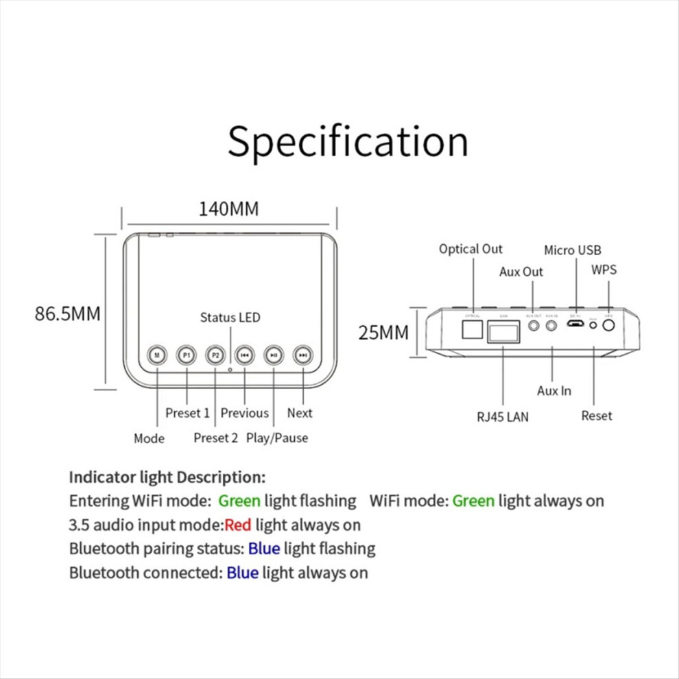 DLNA Airplay Wireless Wifi Music Streamer Receiver for Multi-Room Audio Playback and Compatibility