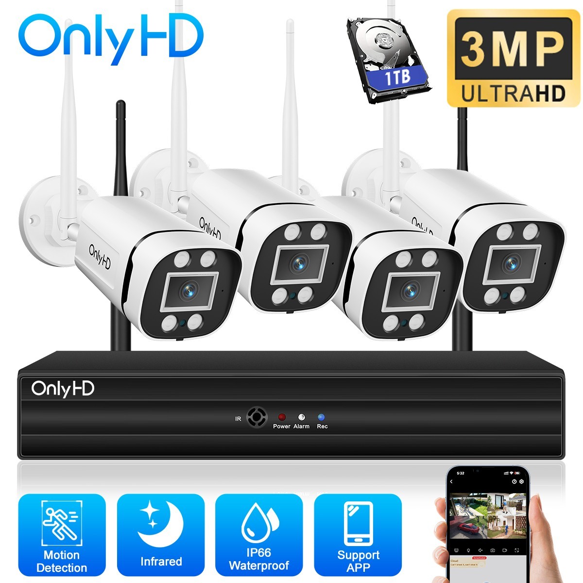 OnlyHD 8CH NVR 3MP Home Outdoor Wireless Wifi CCTV System Security Audio Camera