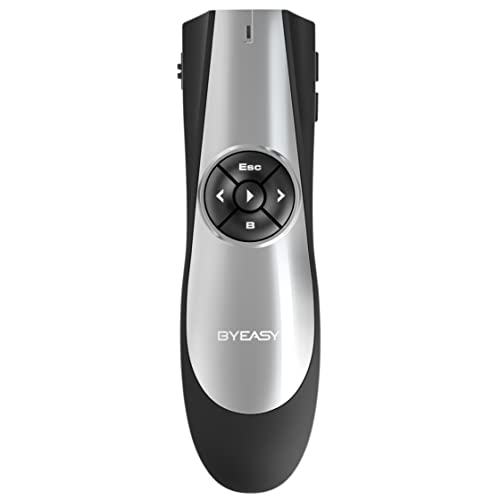 BYEASY Presentation Clicker for Powerpoint, Wireless Presenter Remote Control with Volume Control for Teaching Presentations Speech School Assemblies and etc - Green Laser