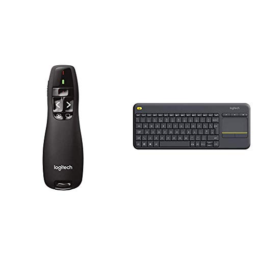 Logitech R400 Wireless Presenter/Presentation Clicker, Intuitive Slideshow Control, Black & K400 Plus Wireless Touch Keyboard for Windows, Android and Chrome - QWERTY, UK Layout, Black