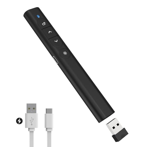 Wireless Presenter Clicker with Red Laser Pointer for Cats USB Rechargeable Presentation PowerPoint Clicker RF 2.4GHz USB Presentation Clicker for Mac / Keynote / PC / Laptop / PPT