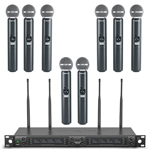 Phenyx Pro 8-Channel UHF Wireless Microphone System with Metal Handheld Dynamic Microphones, Fixed Frequency Mic for Karaoke,Church,Singing,DJ,260ft Range (PTU-4000-8H)