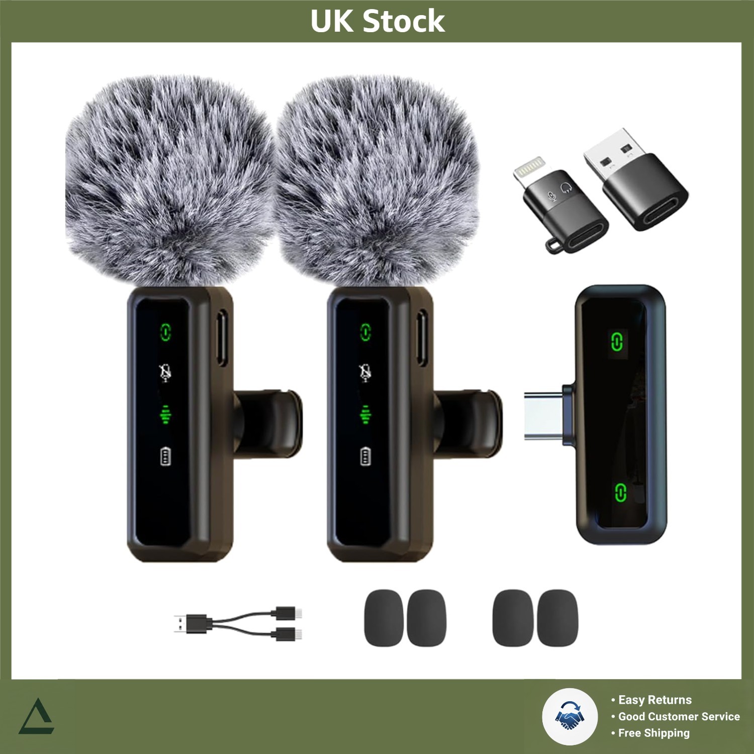 Pro Wireless Lavalier Mic Set for iPhone Android YouTube TikTok 2 Pack