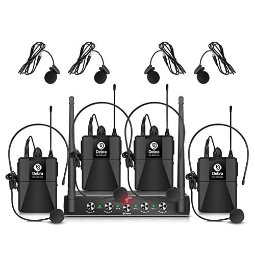 Debra Audio Pro UHF 4-Channel Wireless Mic System, Cordless Lavalier & Headset