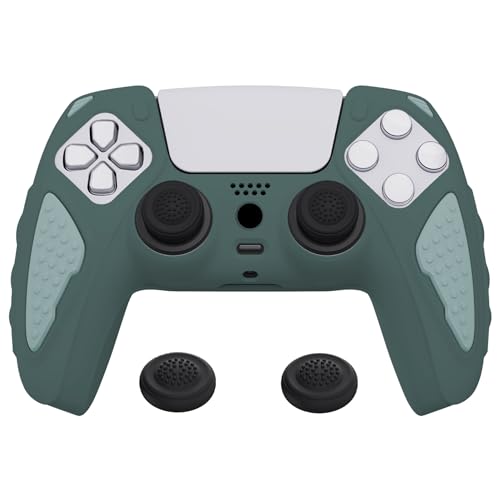 eXtremeRate PlayVital Racing Green 3D Studded Edition Anti-slip Silicone Cover Skin for ps5 Controller, Soft Rubber Case for ps5 Wireless Controller with 6 Black Thumb Grip Caps