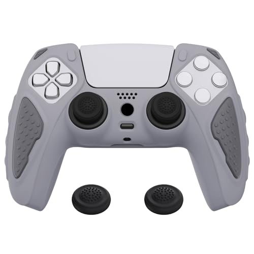 eXtremeRate PlayVital Gray 3D Studded Edition Anti-slip Silicone Cover Skin for ps5 Controller, Soft Rubber Case Protector for ps5 Wireless Controller with 6 Black Thumb Grip Caps