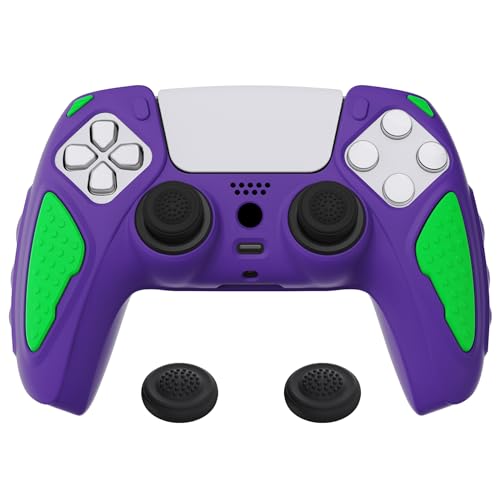 playvital Knight Edition Neon Genesis Purple & Green Two Tone Anti-Slip Silicone Cover Skin for ps5 Controller, Soft Rubber Case for ps5 Wireless Controller with Thumb Grip Caps