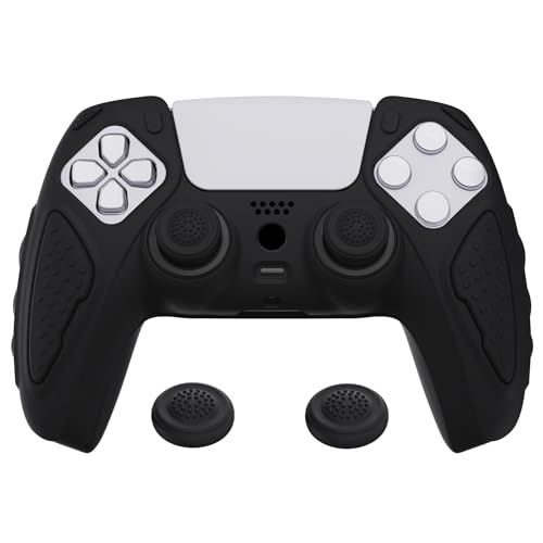 PlayVital Black Pure Series Anti-Slip Silicone Cover Skin for ps5 Controller, Soft Rubber Case for ps5 Wireless Controller with Black Thumb Grip Caps