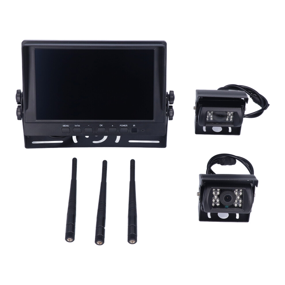 Wireless Reverse Camera Kit 2 Cameras 7 Inch TFT Monitor Night Vision Waterproof IP67 Black