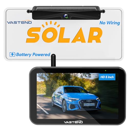 VASTEND Solar Reversing Camera Wireless, Rear View Camera with 5" 1080P Monitor, 4800mAh Backup Camera, 150° Wide Angle, IP69 Waterproof, Reverse Camera for Car, Pickup, SUV(VS-5A)